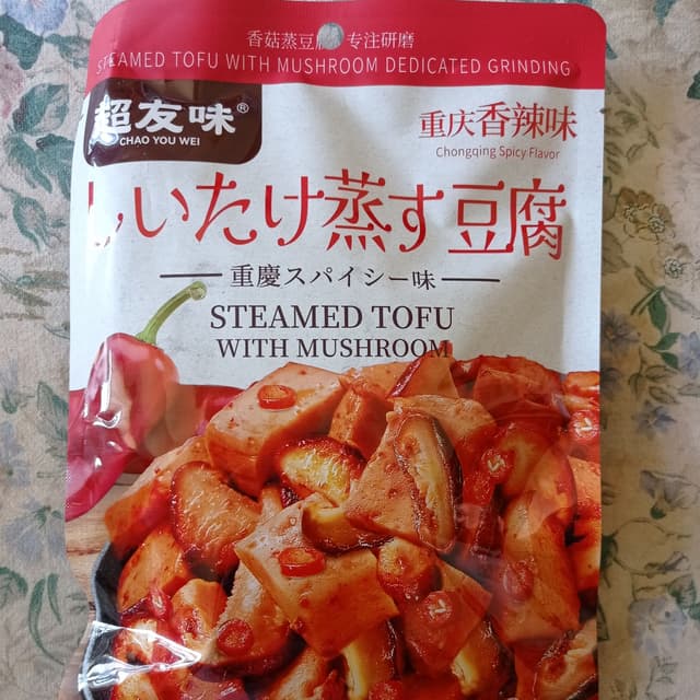 Tofu affumicato con funghi trovato dal mio nuovo asiatico di fiducia 🥢 Che dire se non: f o t o n i c o 🥰🥰🥰 Bello piccantino, tofu già tagliato a cubetti e condito con salsina e coi funghi. Unica pecca è che nel pacco grande ci sono tanti mini pacchettini di plastica con all'interno il prodotto (in effetti era nella sezione snack, e capisco che venga bene da portarsi quindi dietro e mangiarlo appunto come snack, dati che nemmeno è troppo unto e rischi sgoccioli quando lo apri).