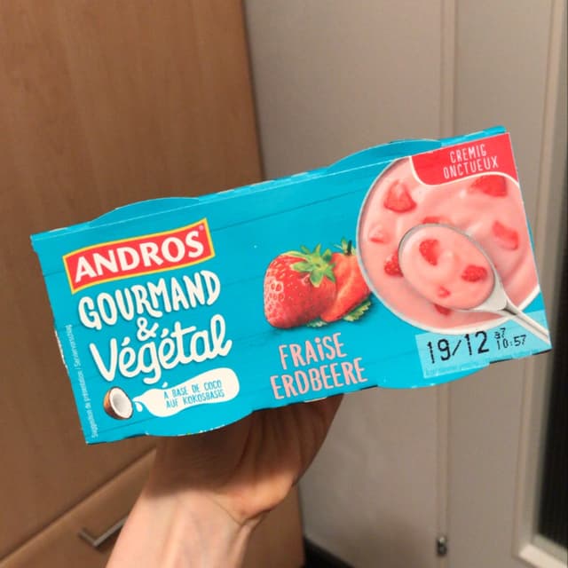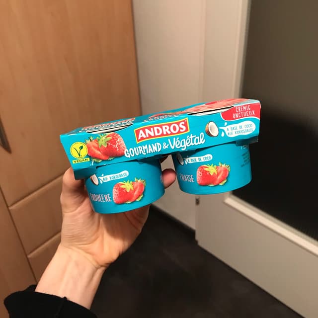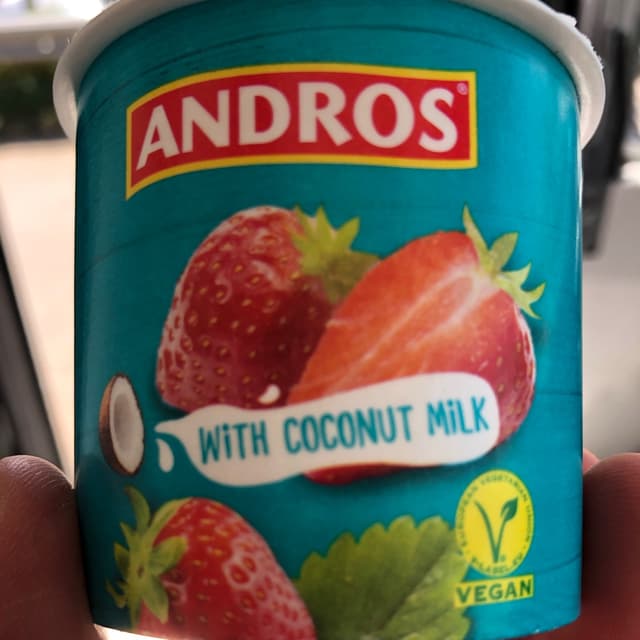 Tasty with lots of fruity bits. Comes in a cardboard pot with a foil lid so full marks for recycling ♻️ Made with #coconutmilk #andros #strawberry #yoghurt #strawberryyogurt #coconut #coconutmilk