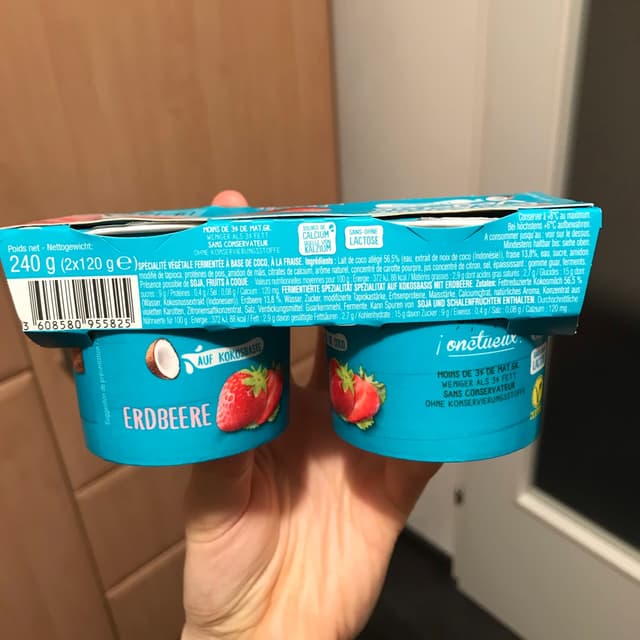 very sweet and a different coconut yoghurt, although you can’t really taste the coconut. its with small strawberry pieces, i like them but some might be bothered. it was good but there are better ones out there.