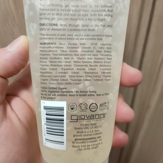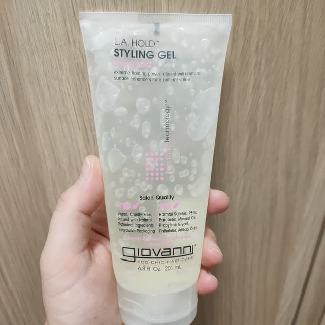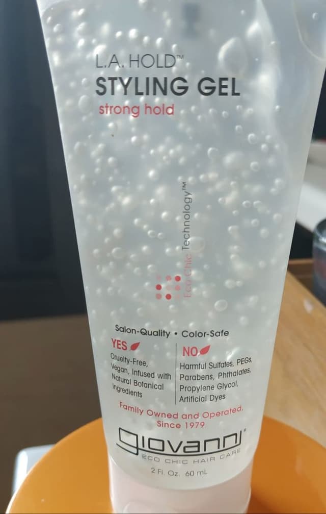 This gel works really well! It holds hair in place for a long time. If you don’t use too much, your hair will stay soft and not turn hard and crunchy like some hair gels.