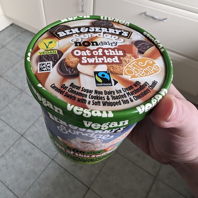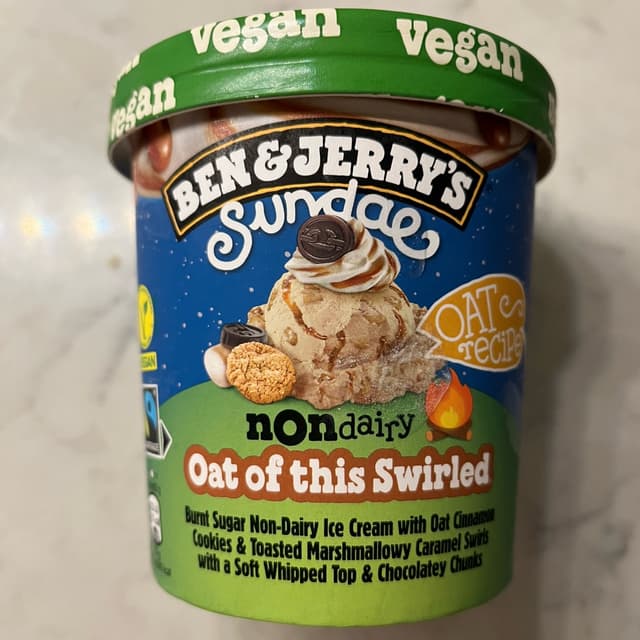 Burnt sugar ice cream with oat cinnamon cookies and toasted marshmallowy caramel swirls with a soft whipped top and chocolate chunks. This might be my new favorite! So sweet, delicious flavors and just amazing! The texture isn't the best, not very creamy, but the flavors are really good.