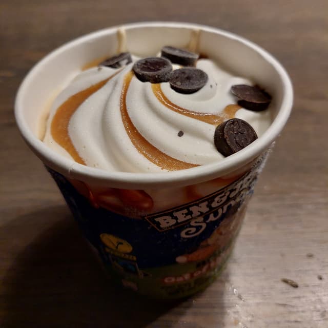 I think this is my least favorite flavor. It wasn't horrible, but definitely not worth the price for me. I liked their almond based ice cream better. The top is quite nice. The topping is creamy and the chocolate and caramel are nice. The icecream under the topping didn't taste like much to me. The cookies were nice though. #benandjerrys #jumbo #sweettooth #icecream