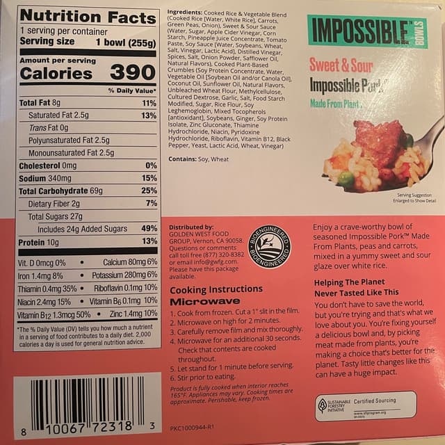 I don’t like giving bad reviews but there’s not much good to say about this sweet and sour Impossible Foods Pork Bowl. The pork was mushy, it was overly sweet for me and where was the veg? A few peas and carrots don’t cut it. I thought sweet and sour usually had pieces of bell peppers 🫑 , pineapple chunks and onion. Sorry but Impossible Foods needs to #tryharder with this one. I won’t be repurchasing this one #veganinillinois #vegansweetnsour #veganpork #veganchinese #vegan4life #vegan4theanimals #vegan4theplanet #abillionlove #veganisnotscary