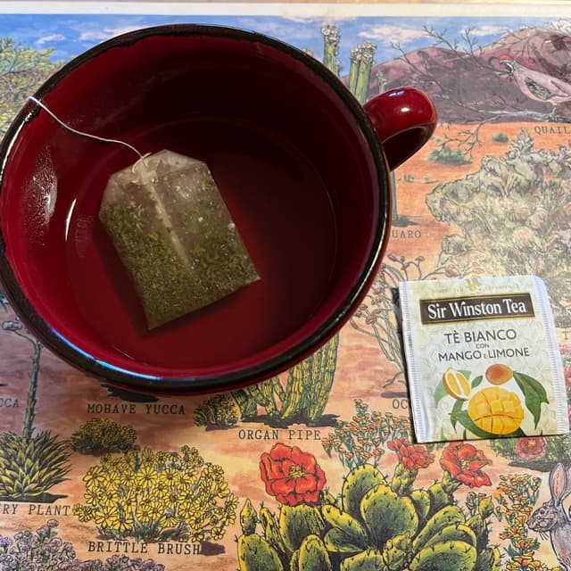 Non ci aspettavamo di trovare un tè così insolito e né tantomeno in un mini market. Appena la bustina incontra l’acqua calda avviene una esplosione di profumo:una manguera in cucina! Poi io sapore è davvero buono e mi piace molto sia stato usato del tè bianco che io apprezzo. #santuariocapraliberatutti