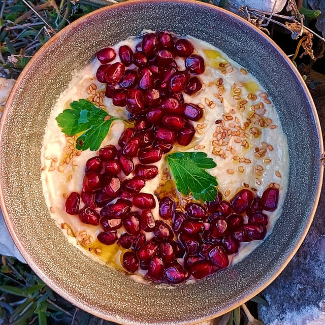 Classicissimo hummus 🌱 Fatto un po' per minaccia dei miei genitori in astinenza (siete adulti, compratevelo o fatevelo🤷🏻♀️😂) ma poi per provare questa, per me nuova, salsa thaina. Ho sempre usato quella della Rapunzel con cui mi trovo bene ma questa mi sembrava costasse meno (in realtà devo controllare) e poi mi andava di provarne una nuova. Ho subito notato una differenza evidente, è molto più liquida e poi la sua parte oleosa tende a rimanere separata dal resto. Come gusto però nulla da dire, nell' hummus molto buona. Non saprei usata in altri modi. Ah parentesi melograno, ne avevo appena sgranato uno e chiunque l' abbia mai fatto, sa' che rottura è. Quindi non ho resistito, come colore ce lo vedevo bene a fare contrasto e ho deciso di usarlo come decorazione. Decorazione un corno! Probabilmente scopro l'acqua calda ma stanno benissimo insieme! l' acidità e freschezza del melograno con il sapore delicato e nocciolato dei ceci, io straa consiglio!! 🤤 Ps. Peccato che l'ho "passato troppo" ed è venuto molto liscio. l'ho preferisco più granuloso