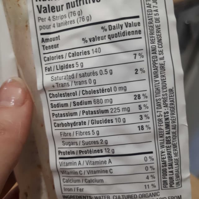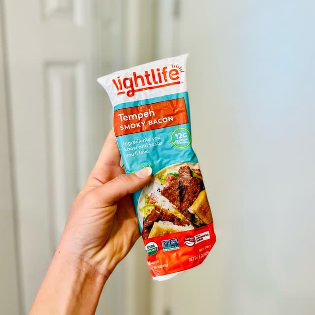 This was a great bacon replacement for my partner. We “baked” in the air fryer and crumbled it up to use as a topping on salads. Very flavorful! Available at Sprouts