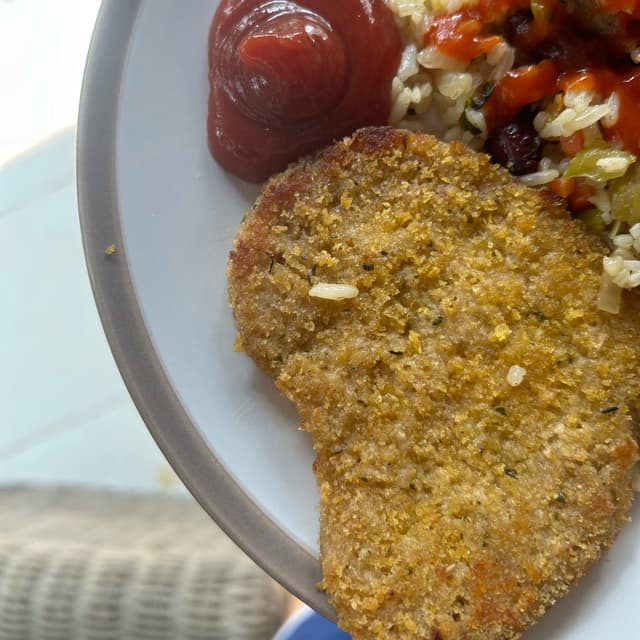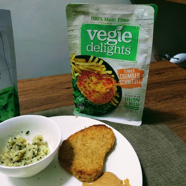 Underrated and under the radar, one of the better (and more affordable) #frozen #lazyvegan #schnitzel options in town 😄 Meaty, firm, and crunchy on the surface. This is how it looked just cooked in the oven per the instructions; I need to deep-fry next time to unlock more goodness 🤤 Had this with instant mash and frozen corn, life doesn't get any better 😛