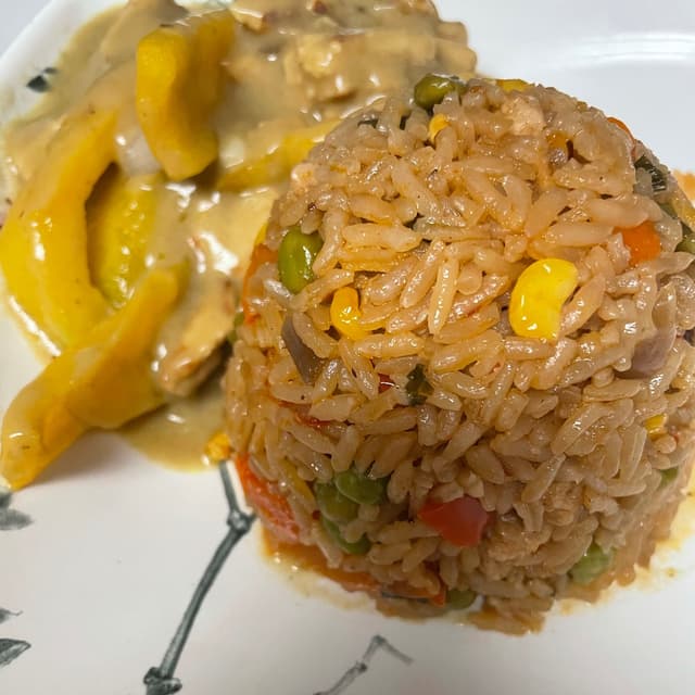This Thai green curry sauce was pretty good. I was really hoping for a stronger flavor though. I should have added some additional green curry paste or more curry powder or something else to enhance it. It was just a little too bland for me, if I’m being honest. The stir fry vegetables and garbanzo beans I added definitely made it a lot better. I’ll probably just stick with one of Trader Joe’s frozen curry meals or just simmer up some green curry paste, coconut milk & spices next time. Cool quick & easy option though. • • #thaigreencurry #traderjoes #veganin2022 #veganiseasy