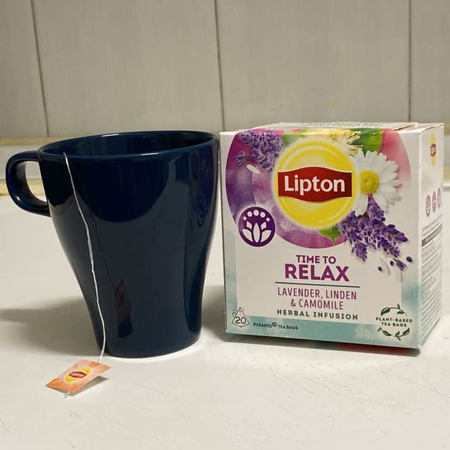 Infusi a piramide a base di camomilla, lavanda e tiglio, forse un pò troppo carica di lavanda.
