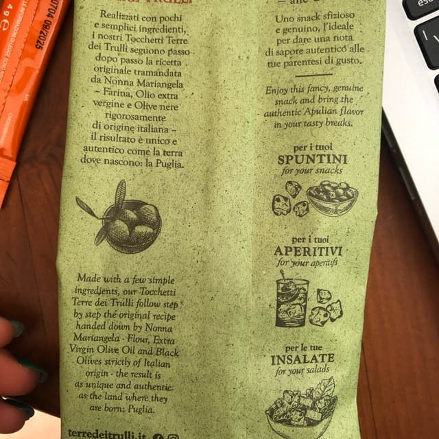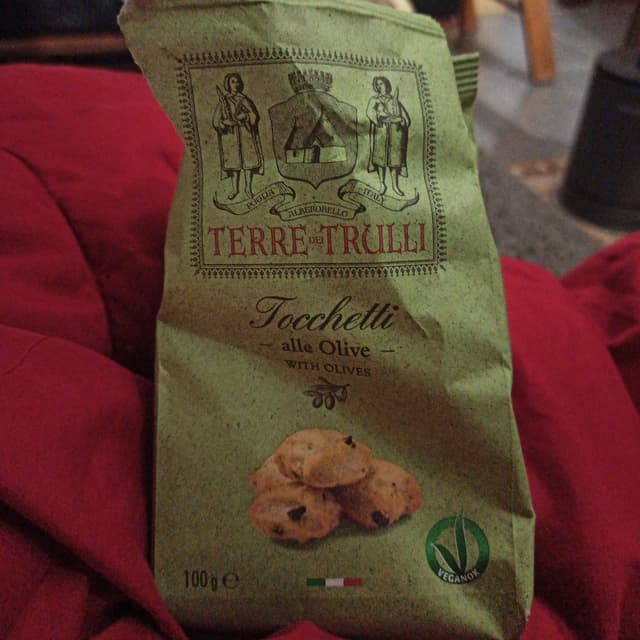 Tocchetti alle olive 🫒 con olio extravergine di oliva: non sono troppo saporiti o stuzzicanti, l’impasto ricorda quello dei tarallini, la forma tipo degli gnocchetti. Confezione regalo da 100gr , sono stata felice di trovarlo all’interno di un cesto natalizio; per alcuni sarà poca cosa, ma io ho apprezzato il fatto che ci fosse uno snack dichiaratamente Veg 😊 pack riciclabile nella carta #vegansnacks #olives #olives