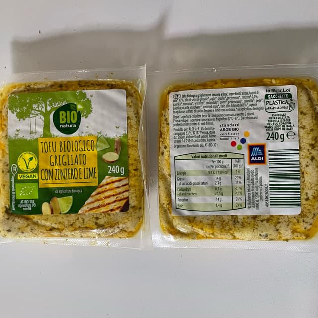 L'ho acquistato incuriosita dalla marinatura allo zenzero e lime (che è una combo che mi piace). Ma questo tofu non mi ha per niente conquistata. Non so se per via della marinatura o per il tofu in sé. Sta di fatto che l'assaggio mi ha delusa.