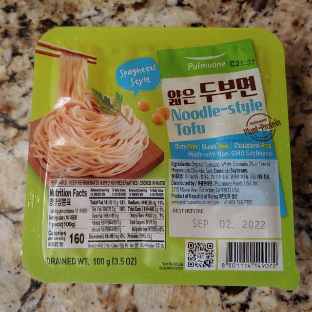 I like the texture of these tofu noodles - somewhat like tau kwa (i.e. firm tofu) cut into strips. They don’t have much taste so I recommend cooking them in a strong tasting sauce. I cooked mine in gochujang sauce with white crab mushrooms. Lip-smacking good yet low in carbs! 😋 #lowcarb #korean #vegan