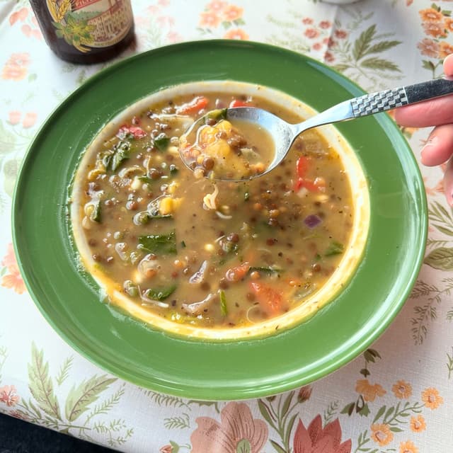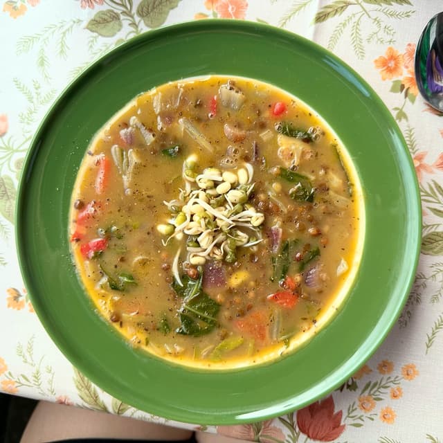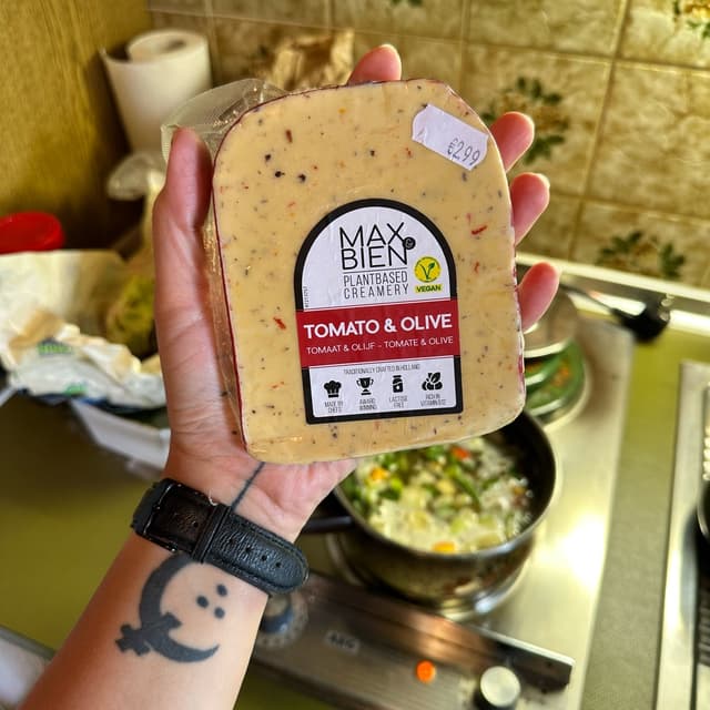 It’s usually so weird when you look at an ingredients list and understand exactly what you’re eating 😋 Love a #nonasties product! I packed maybe a little too much for my stay in the #alps so I had to make use of this entire block of #vegancheese before my #vegantravel to Switzerland next 😄 I don’t think any #cheese will last the hot #summer weather! 🌦️ This is #coconutoil and #potatostarch based so I knew it was a #cheesethatmelts 🙌 I decided to make some cheese #soup with some leftover vegetables and my emergency travel lentils 🫕 You know how travelling while vegan can be 😂 Et voila! A perfect and incredibly hearty breakfast 🤰 I had some bites out of it too and gosh was it #lekker 😋 The tomato is more an aftertaste and for acidity than anything else and the olive makes it really nice and #savoury 🫒 All this for only €3 is crazy compared to what I usually pay in Singapore! 💸