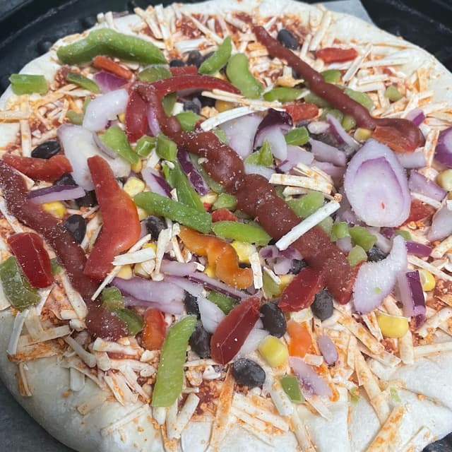 I much preferred this Pizza to the bbq jackfruit one! The base seemed more “sturdy” and the Center didn’t fall away from the crust as it did on the bbq one. Toppings were jam packed which I liked, and overall the favours were lovely. The crust was a little flour-y in some places. I’d definitely would recommend this one over the bbq but I still would prefer to spend a little more on either a branded pizza or a takeout. #pizza #veganpizza #vegetablepizza #plantmenu