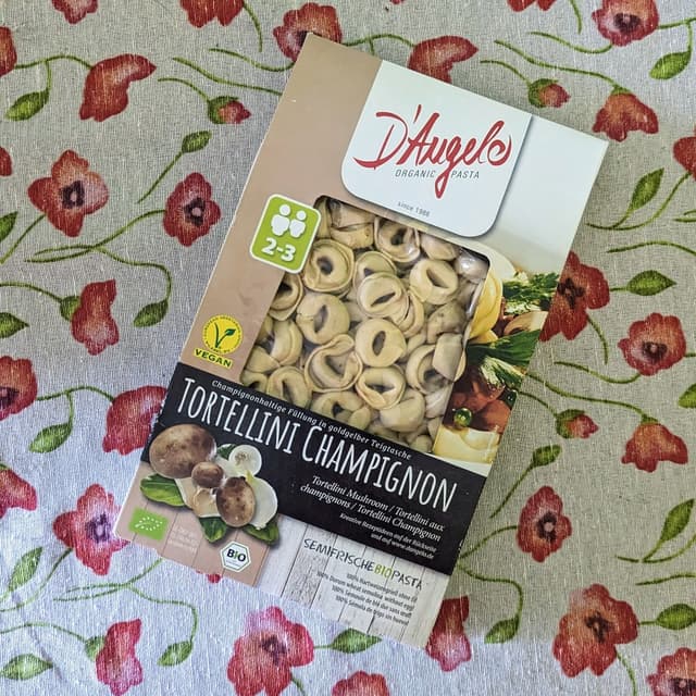 Che piacere mangiare pasta ripiena vegana! Questi tortellini sono buoni anche se il ripieno é delicato, non molto saporito: si sentono a tratti i funghi champignon e un pó la cipolla. Ottima la sfoglia che tiene bene 12 minuti di cottura (meglio non superarli). Volevo prepararli con la panna veg ma non l'avevo e quindi sono finiti in brodo 😊 con piselli. In vendita da Coccole di Gusto (ora solo online) a 4,80 euro la confezione da 2-3 porzioni. Prodotto biologico e semifresco che si conserva a lungo prima dell'apertura a temperatura ambiente. Molto comodo! Yuka =79/100. #tortellini #tortelliniveg #stuffedpasta #organicpasta #mushroomlover