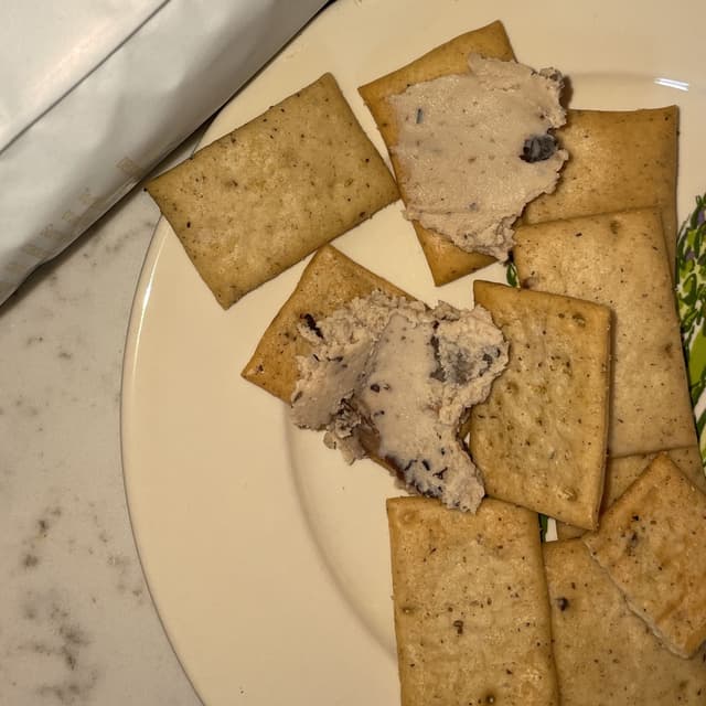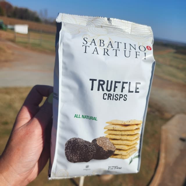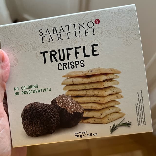 These are delicious even on their own but I was in the mood for truffle explosion so had these with Miyokos truffle cheese and it was great. Real truffle. Ingredients are wheat flour, mushroom, sunflower oil, brewers yeast, salt, black summer truffle, pepper, spices, natural flavor.