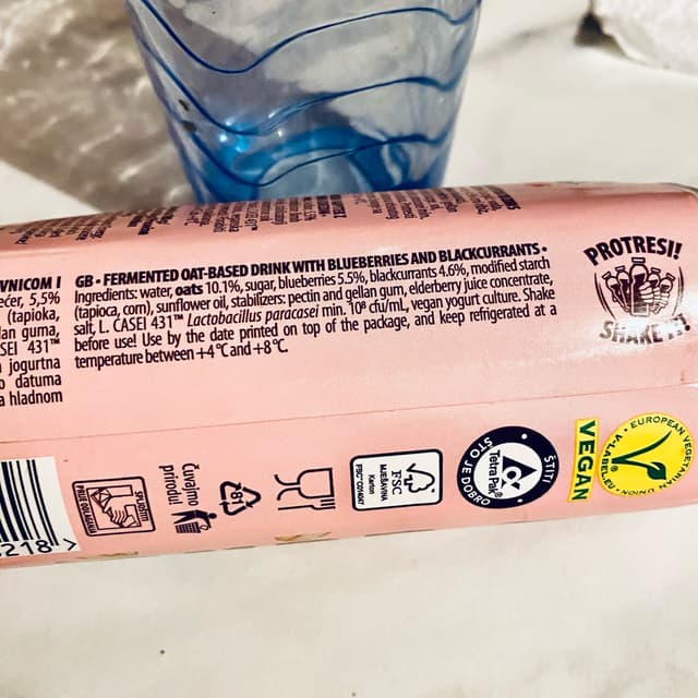 #Blueberry and #blackcurrant yogurt, fermented oat-based drink. Oats are very little noticeable, as is the taste of mango. Unlike mango, this flavor seems less sweet since blueberries and blackcurrant are sour. The texture is perfect, thin enough and yet thick enough with bits of blueberry and blackcurrant. Lactobacillus paracasei was also added, which is why they pointed out in the declaration that the product contains more than a million good bacteria. Its price is €2, which is still a bit too much considering regular milk drinks, but I will continue to buy this sometimes because I am very happy that such a large producer of dairy products has gone in the plant-based direction. #berrylover