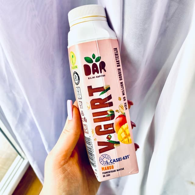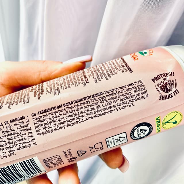 Croatia's top producer of milk and dairy products has finally decided to introduce vegan puddings and yogurts into its product range. I think the company has been around since 1959 and this is the first time (apart from a few types of plant-based milk they added in its range a few years ago) that they decided to introduce two flavors of pudding and two fruit yogurts. The first thing I tried was this mango V-gurt, or as they called it – fermented oat-based drink. I have no complaints about the taste, the oats are very little noticeable, but the sweetness of the mango and mango puree prevails. The texture is perfect, thin enough and yet thick enough with chunks of mango. In my opinion, the product contains too much added sugar and is therefore too sweet for me. I think the mango gives enough sweetness on its own. And finally, Lactobacillus paracasei was added, which is why they pointed out on the declaration that the product contains more than a million good bacteria. Its price is €2, which is still a bit too much considering regular dairy fruit drinks, but this will still be found at least once a week in my fridge when I want something sweet, because I'm glad that such a large producer of dairy products has started a plant-based direction and I want to support them. Before this, I think I have bought absolutely nothing from this manufacturer for 7 years (except for their few types of plant-based milk) since I don't eat dairy products. I certainly hope for vegan novelties in the next year, Vindija! Puddings and another flavor of #yogurt will be presented in the following reviews.