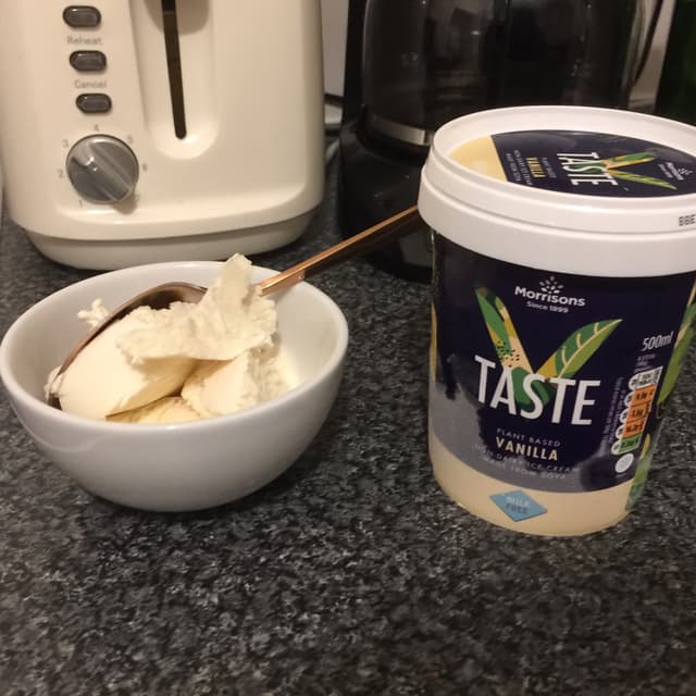 Very good vegan icecream. I’ve tried the vanilla flavour and i am very happy with it. Good texture, very creamy and tasty. Also it’s cheap, 400 ml for less than a pound, it lasts me long and I always stock up on this. Sometimes I had cocoa powder or a fruit on it and it’s even better. Can’t wait to try the chocolate and the strawberry flavour too.