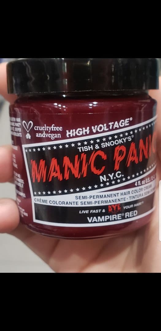 I wanted to try red hair on myself, i have dark brown hair and my tips were blonde so i tried this brand because first its vegan and #crueltyfree and because i already tried and its the only vegan dye hair here in japan. At first i didnt like because I thought nothing changed but after drying my hair i could see the big difference! I really love it omg! Changing hair color is fun but you have to be careful not to damage with bleach. I didnt use bleach this time. I really recommend to use a towel you dont need anymore because it stains so much.. everything was so red and also i still have redness on my ears, face and neck. It also stains on furniture so be extra careful. #manicpanic #veganhaircare #vegandye #vegangirl