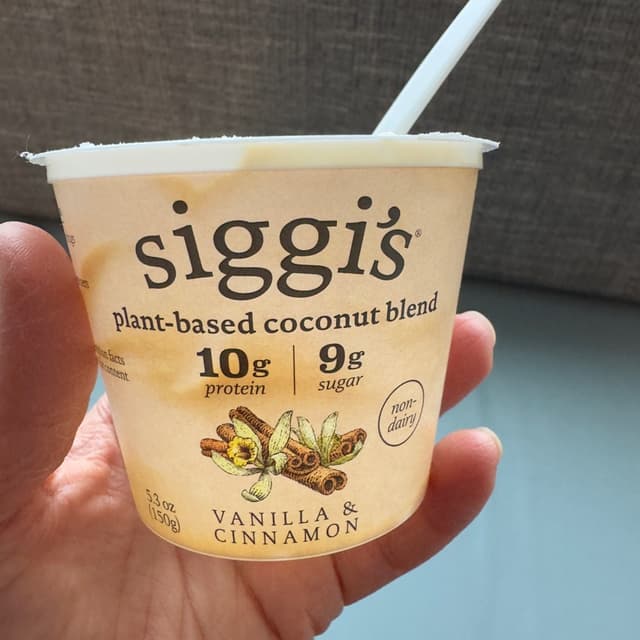 Siggi's Vanilla & Cinnamon Coconut Yogurt is a plant-based yogurt that offers a delicious and nutritious option for breakfast or dessert. Made with simple, natural ingredients, this creamy yogurt has a flavorful vanilla and cinnamon taste. It contains 10 grams of protein and healthy fats, making it a guilt-free indulgence. Some customers have reported enjoying the yogurt's smooth texture and mild sweetness.