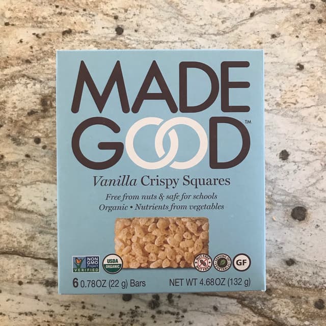 #madegood #glutenfree #soyfree #ricecrispysquare #organicingredients #sustainable #nongmocertified I bought this box and a few other boxes of Made Good products at the Outdoor Adventure Show in February. I think the deal was 4 or 5 boxes for $20. These crispy squares are great. It’s been many years (at least 20 years) since I’ve had a rice crispy square and it’s my first time as a vegan. It tasted just as I had remembered it, but not as sticky (which is good or bad, depending on how you feel). The vanilla flavour was definitely noticeable, but not strongly. The ingredient list is decent with some organic and sustainable ingredients. Each square also provides a good amount of Vitamins A, C, D and E, along with a couple minerals, while being low in calories and fat. I’ll get this again.