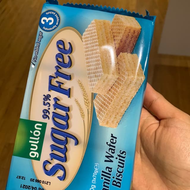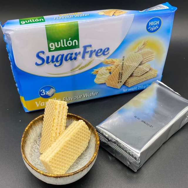 These are labelled sugar-free, but jeepers they were painfully sweet. Oh and they’re also labelled high in fibre🤷♀️… not something i associate with wafers so it took me by surprise. Anyways, if you’re after a vegan wafer or a very sweet treat this might be something to consider. Three mini packets in this, and each has 8 pieces. #veganwafer #sugarfree #highfibre gullón does mostly biscuits and cakes, some sugar-free, some gluten-free, some dairy-free etc. that’s about all I know of the brand.