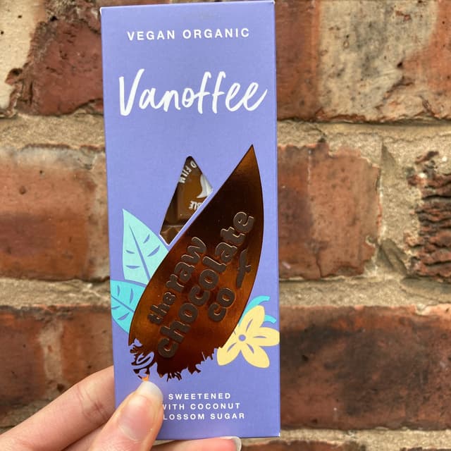 Delicious caramel-y tasting quality vegan chocolate. 100% organic ingredients, cardboard packaging with compostable film. Love this company’s stuff. It’s a bit pricey but I ordered direct and they were doing 50% off so really good value. Marked vegan.