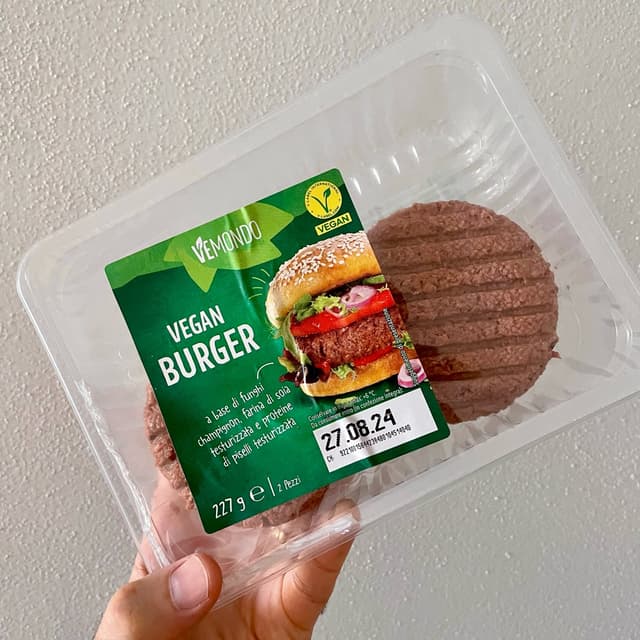 Vegan burger🍔 Burger tipo fake meat a base di soia, piselli e funghi. Il sapore non è male ma non si avvicina per niente alla carne. Magari in un panino con salse e formaggi si camuffa bene. In ogni caso mi è piaciuto anche si sentono le spezie quindi faccio fatica a digerirlo. 📍Acquistato da Lidl a 2.49€ #burger #veganburger #veggieburger #fakemeat #panino #lidl #lidlmonamour #vemondo #vemondolidl #settimanaveganlidl #burgers