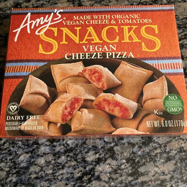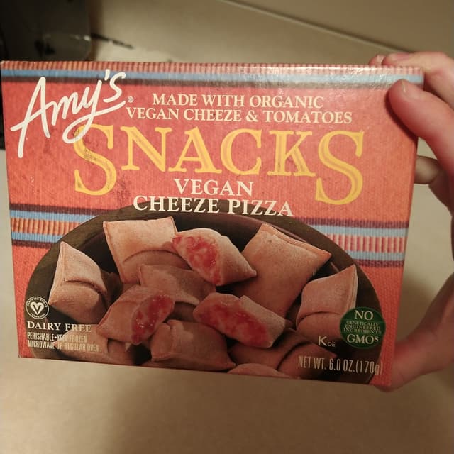 This is the only vegan "pizza rolls" I've ever seen at the store, but they weren't exceptionally good. Kinda just seemed like vegan cheese with minimal herbs in a pastry. I didn't detect any tomato sauce, maybe it mixed? The pastry also didn't look too nice either lol. Kinda was bland, I dipped them in sauces to eat. But it was a convenient snack. I might buy them again, in a pinch. We really need good vegan pizza rolls, though!!