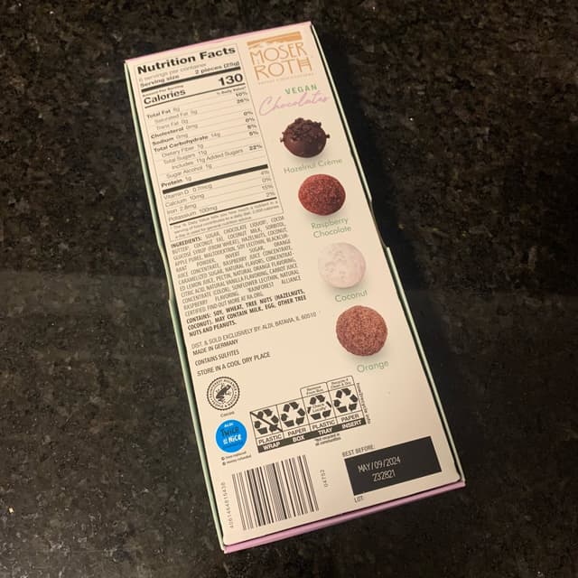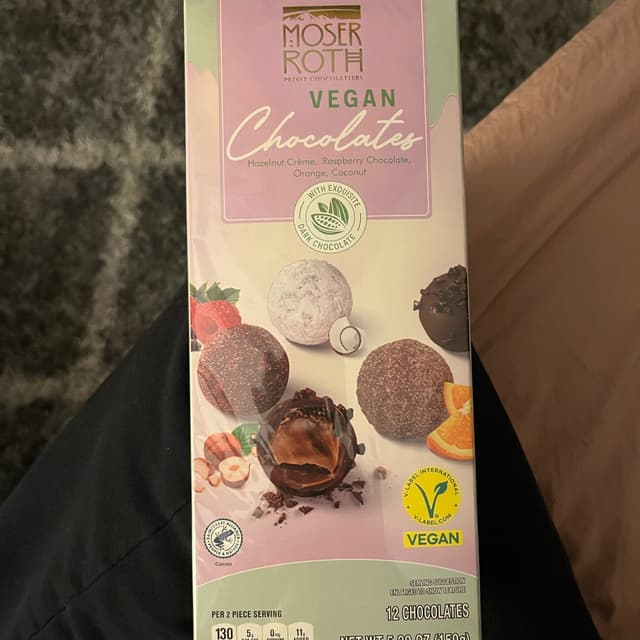 I actually got these from someone at work. He always felt bad I could never eat the sweets and food he made for holidays or special food days at work. He and his wife found these at Aldi, and he said he thought of me immediately. So nice. This box had four flavors: hazelnut cream, raspberry chocolate, #coconut, and orange. My Dad really loved them. His favorite was the hazelnut creme, and then the #raspberry chocolate. These would also be nice to bring to parties or gatherings. I'm so glad they're offering more and more #vegan candy and chocolates options! #govegan #veganisnotscary #abillionlove #veganfortheanimals