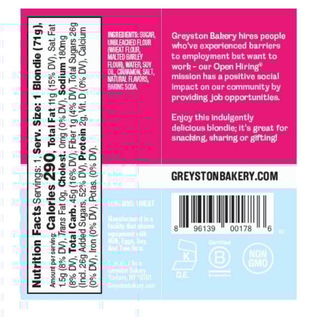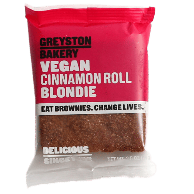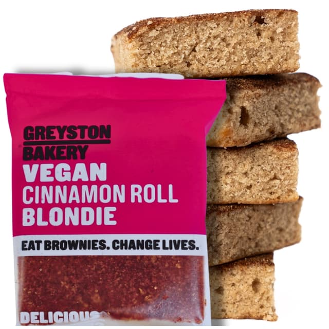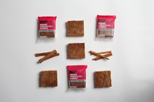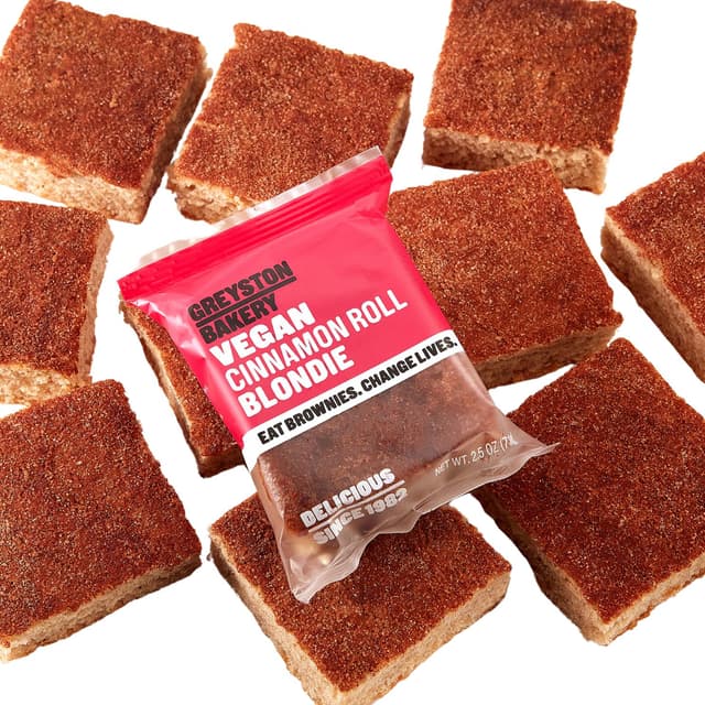 Our vegan cinnamon roll blondie is a delicious dessert that combines the flavors of cinnamon and blondie in a chewy, satisfying treat. Made with high-quality ingredients, this blondie is perfect for satisfying your sweet tooth. The rich, sweet flavor of the blondie is complemented by a hint of cinnamon, creating a unique and indulgent taste. Whether you're looking for a treat to enjoy on its own or to pair with your favorite beverage, our vegan cinnamon roll blondie is sure to please. With its satisfying chewiness and blissful indulgence, this blondie is a must-try for anyone with a sweet tooth. From the makers of brownies for Ben & Jerry's since 1987 (and their non-dairy versions 😉)!