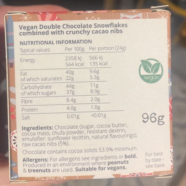 Bought these at 2 Pound Street in Wendover, which is a cheese and wine shop (I was buying some wine for my Dad). They are SO tasty! They were £2.45 for a box of 6 chocolate snowflakes which I think is very reasonable. The box is recyclable and the plastic wrappers are compostable biofilm, making this product even more impressive. Would definitely recommend!
