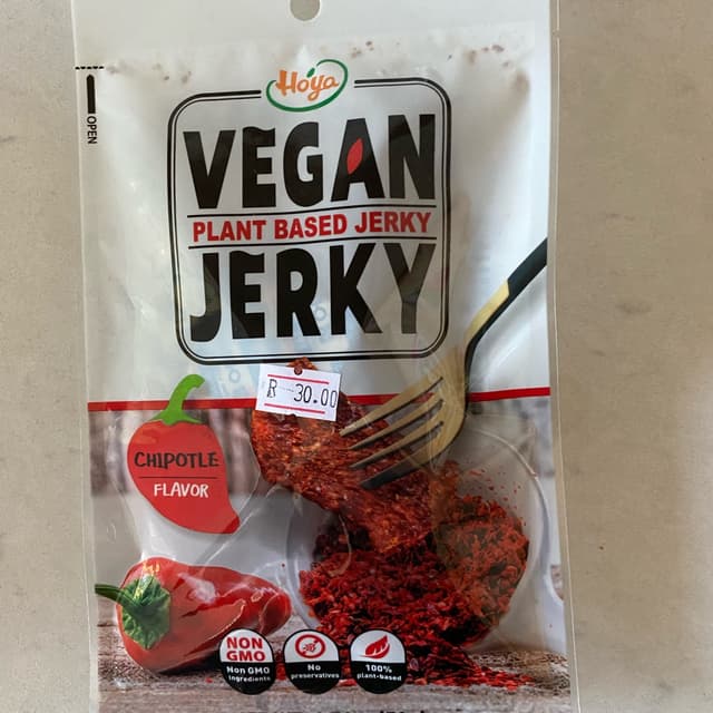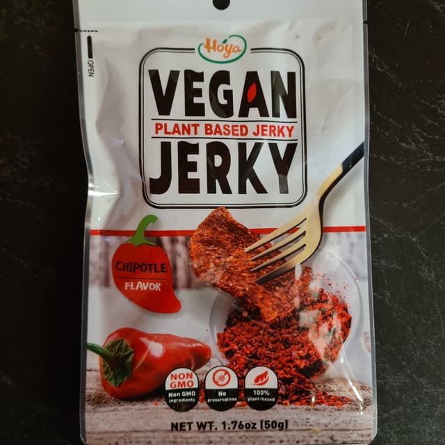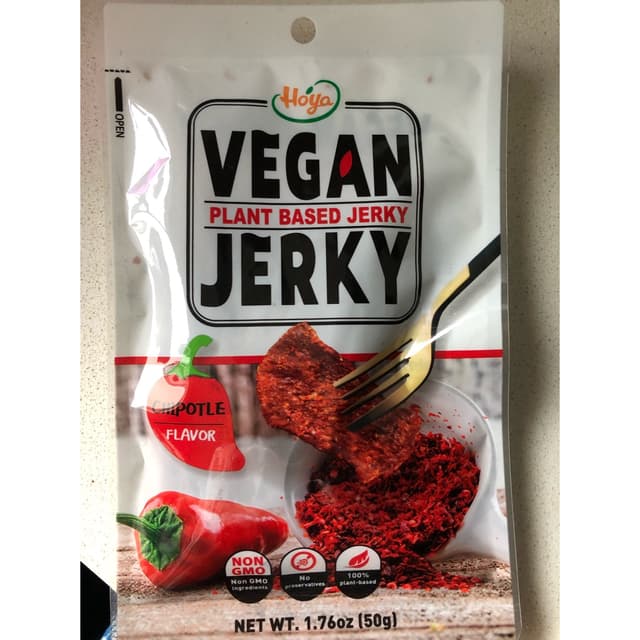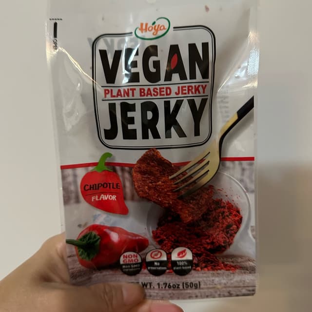 I'm a fan of the saltiness, flavour and chew!! A good snack that has some protein too. Very mild heat. #veganjerky