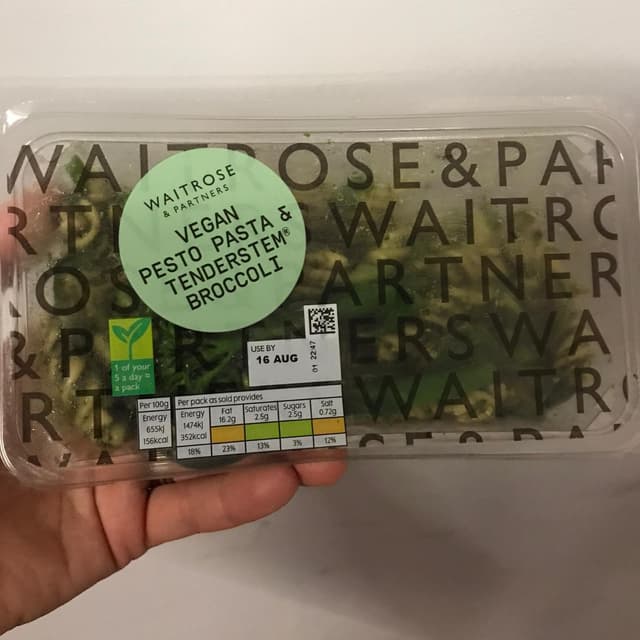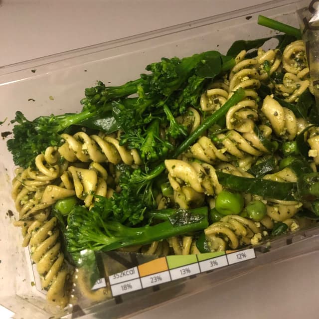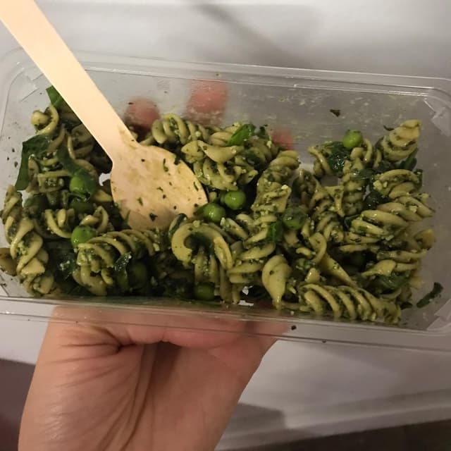 Really tasty #pestopasta with broccoli, peas and kale. I was looking for a salad and this was as close to one as I could find in this particular shop, and it was on the pricey side for the amount you get. Clearly labelled vegan and one of your 5 a day :) #waitrose #pasta #pesto #onthego