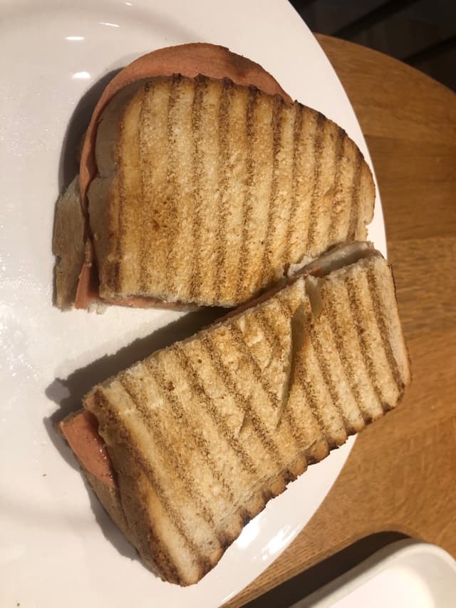 This is absolutely beautiful. Not the best toastie in the world but still gorgeous. Yummy quorn ham and some kind of Vegan cheese make this a lovely sight to see at a coffee shop. Nom nom nom.