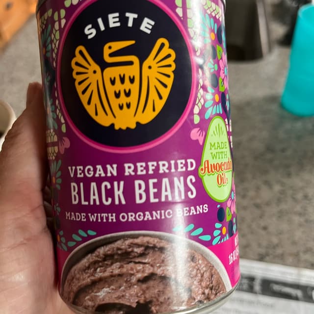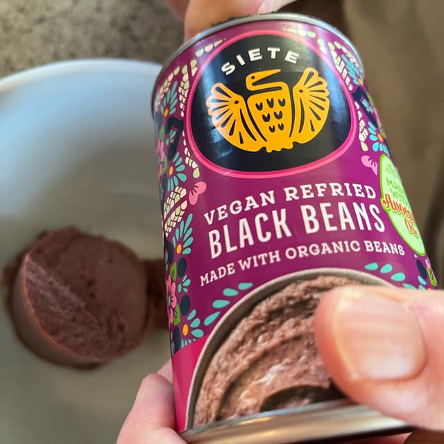Refried beans are a staple in my house! It's nice to have variety so I can choose between classic pinto, or the deeper flavor of black beans. I love Siete's product designs. They always look so pretty and fun. These refried black beans are a good quality, and were great to make in a big batch with Savory Spice fajita seasoning and sauteed onion so I could use them for quesadillas and burritos for a few days. #blackbeans #beans #refriedbeans #mexican #cannedfood #vpantry #veganstaples #vegancooking #veganrecipes #protein #avocadooil
