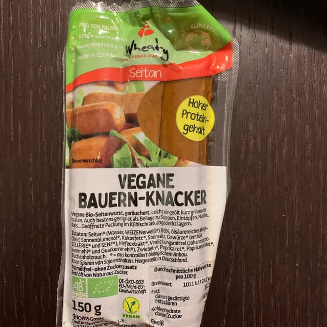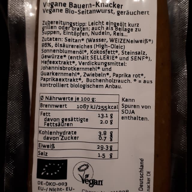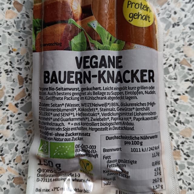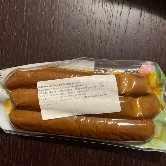 #organic Delicious organic seitan-based vegan sausages, very aromatic and a little bit spicy, great for frying in a pan or to use in stews. Rich in protein. Price 2,99 €.