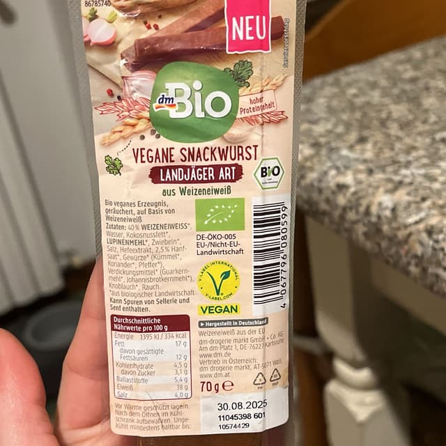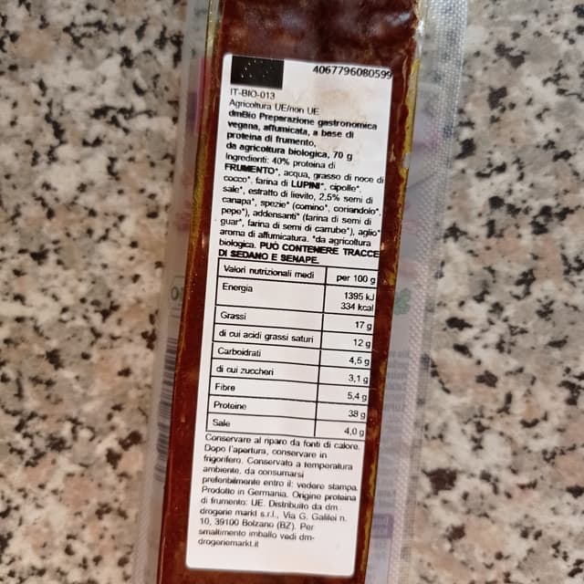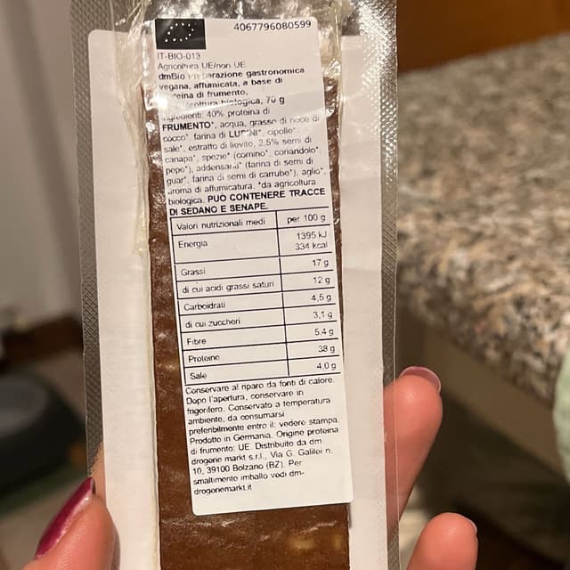 Praticamente delle salsicce affumicate vegetali!!! Il sapore a parer mio è buonissimo, mai stata grande fan delle salsicce, ma queste hanno quel gusto che le ricorda, ma in senso buono? sí sente l' affumicato, sono davvero molto saporite, e comodi e anche versatili! questa volta io le ho tagliato a cubetti e messi nel cous cous con dei pomodorini, ma se no si possono anche usare come cibo 'da passeggio', sgranocchiandole mentre si cammina (dentro alla confezione ci sono questi due simil bastoncini, divisi e lunghi di prodotto). Dove: DM Costo: 2€ #vegan #dm #bio #biologico #vegano #italy #veganinitaly #supermarket #veganisnotscary #abillionlove