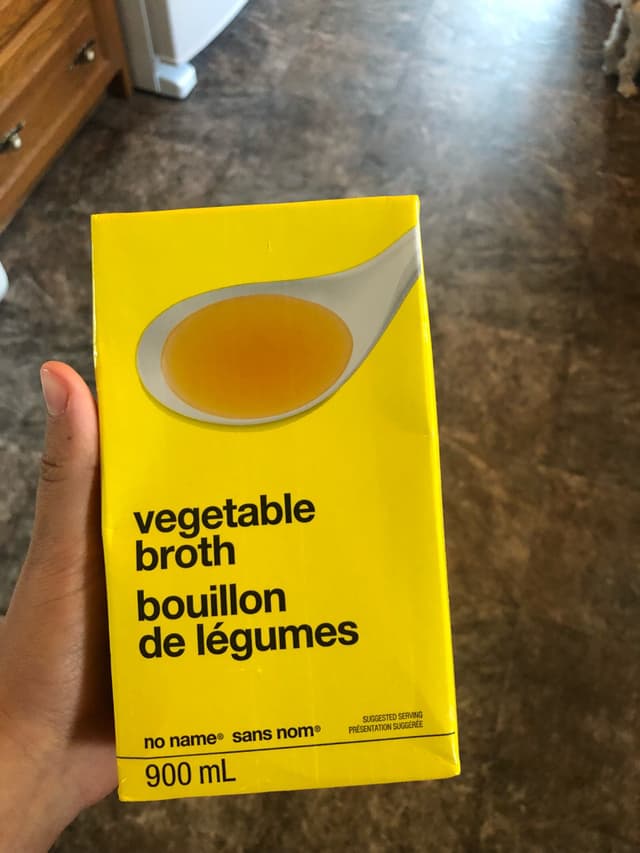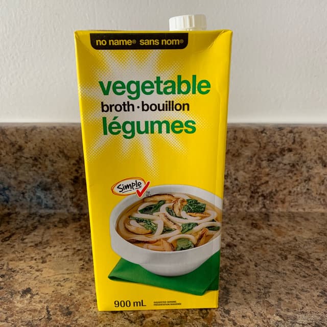 #noname #vegetablebroth I bought this vegetable broth at No Frills because it was available. I don’t normally buy No Name broth only because it doesn’t have a no/low sodium version (at least, I don’t think it does). I don’t remember what brand I normally buy which does have a no/low sodium version. Many food products today have too much sodium, so I try to cut back where I can. I used the vegetable broth in a Baked Spanish Rice recipe, which I got from Thug Kitchen. The recipe was one component of burritos that I made today. Also, in this recipe were onions, tomatoes, garlic, jalapeño, tomato paste, long grain rice, oil, corn, peas, lime juice and cilantro.  Despite the fact this vegetable broth had more salt than I would like, I would probably get it again if a no/low sodium version was not available. It did the job.  I have no idea what it taste like. I don’t think it was intended to be drunk on its own.