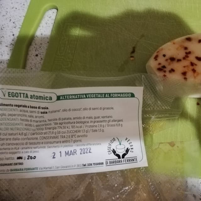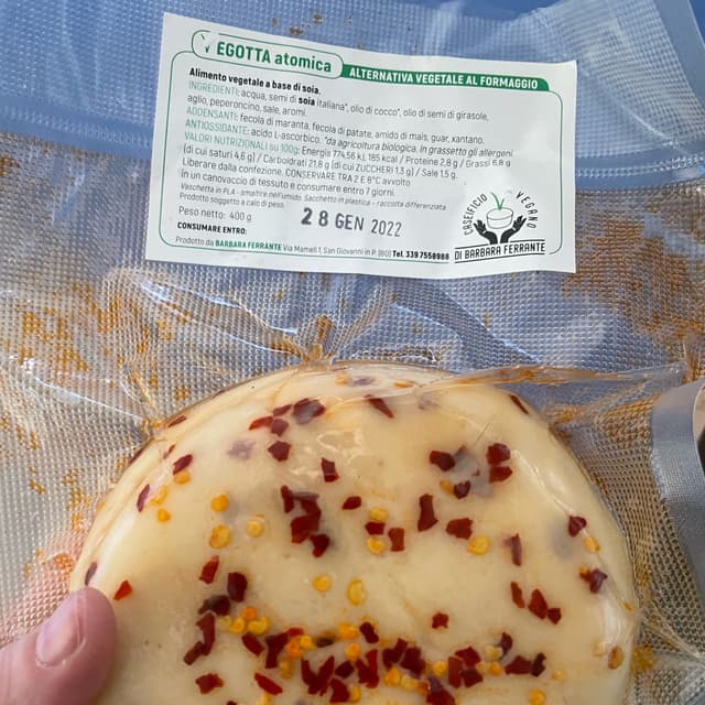 Buonissima Vegotta,morbida tanto che si riusciva a spalmare,e bella piccantina come piace a me! **Il Caseificio Vegano di Barbara Ferrante,via Sicilia 12,San Matteo della Decima** #vegotta #formaggiovegan #spicy