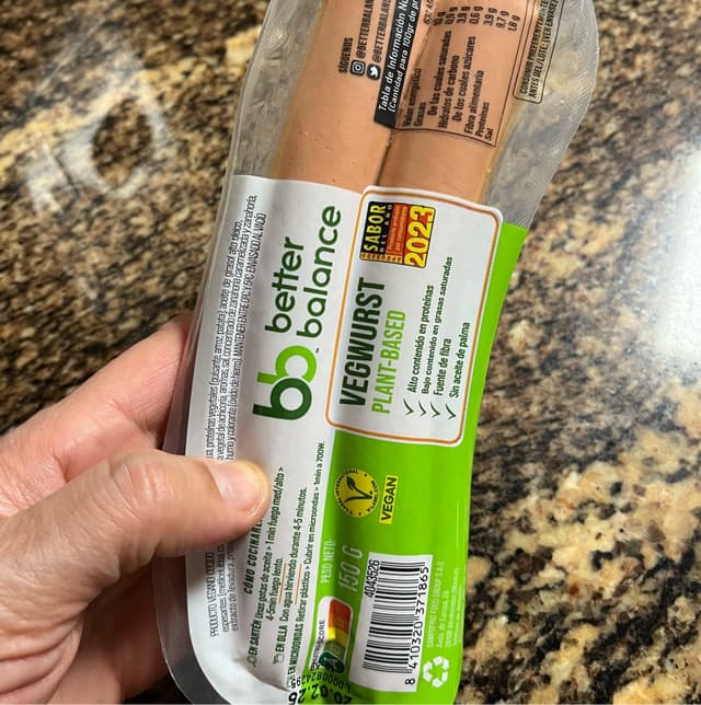 Salchichas tipo alemana de la marca better balance. Están buenísimas!.