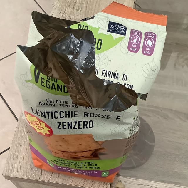 Sottili, leggere e croccanti, realizzate con farina di lenticchie rosse, olio extravergine d'oliva e sale rosa dell'Himalaya, senza lieviti. In aggiunta c'è lo zenzero che dà un tocco di sfiziosità al tutto. Sono un ottimo snack ricco di ferro, proteine, fibre e calcio. Difetto: sono un pochino secche. #vegan #snack #lenticchie #zenzero #sottolestelle