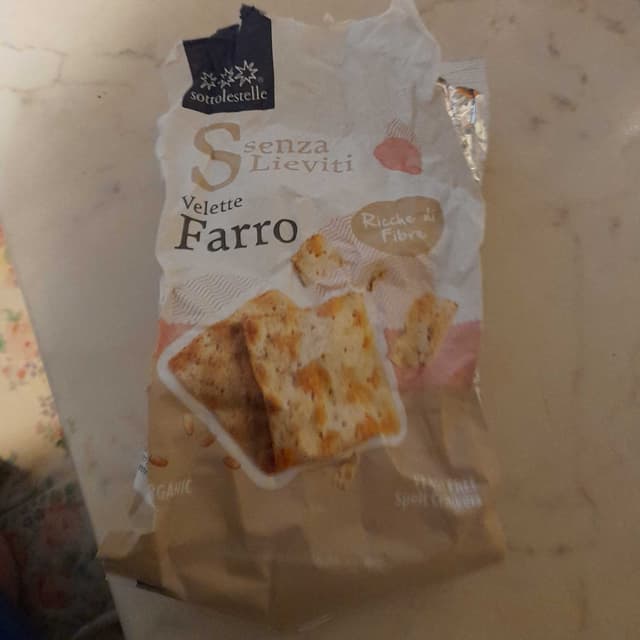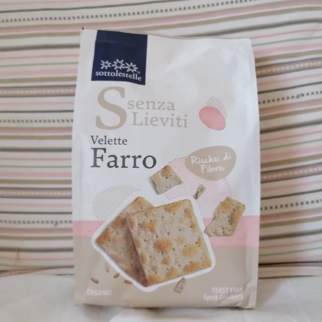 Sono contenta di aver trovato delle velette, crackers al farro, dato che devo mangiare principalmente a base di farina di farro. Si "sgranocchiano" bene anche da sole, ma spesso ci spalmo sopra la nuova Philadelphia veg o il mio formaggio veg homemade, con pezzetti di olive sopra. Confezione in carta!