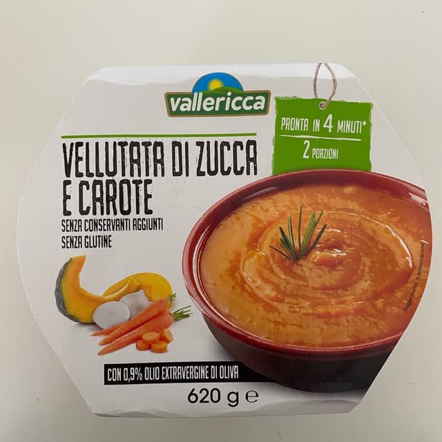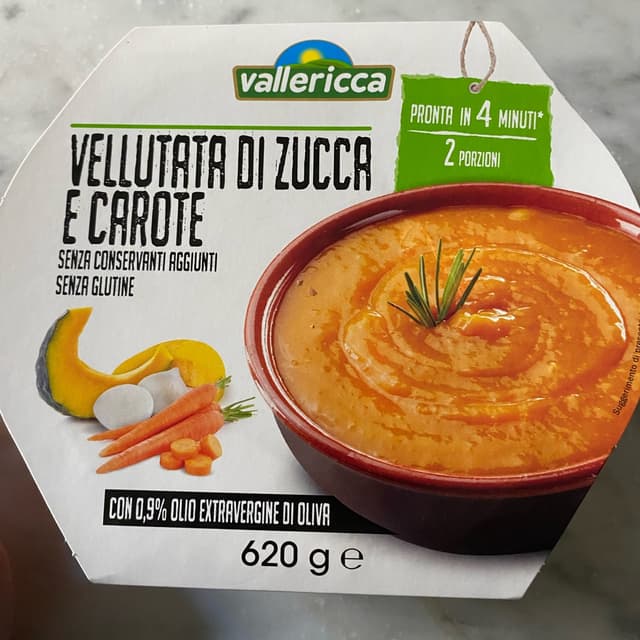 Buonissima questa vellutata di zucca e carote, sulla confezione c’è scritto che cuoce in 4 minuti ma meglio lasciarla un paio di minuti in più