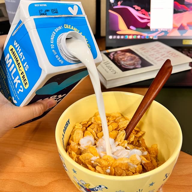 Finally trying the ‘original’ flavour for the #VeryDairy #milk. Made with Perfect Day! My non-vegan husband said it ‘tasted like a shitty version of Meiji’ lol I haven’t had #dairy in a very long time so to me it tasted like a mild sweet creamy drink and it goes well with cereal. I’d probably buy again. #dairyfree #verydairy #perfectday #animalfree