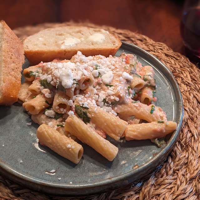 This has been a fun product to use! @amylou originally bought this for her summer pasta, made with uncooked tomato sauce. It worked really well in that! The recipe was in a non-vegan cookbook, so we switched it up and I don't feel bad sharing it below! I have been using the rest for Provence-style sandwiches, and even just on my Trader Joe's olive fougasse as a snack. It's nice and creamy and melts nicely in sauces. It doesn't have that grainy texture I've associated with Kite Hill in the past. Summer Pasta with Uncooked Tomato Sauce: - 12 ounces very ripe, soft tomatoes, halved though their equators (2 to 3 medium) -¼ cup good-quality extra-virgin olive oil, plus more for drizzling -1 teaspoon kosher salt, plus more as needed -1 garlic clove, grated on a Microplane or minced (optional) -½ teaspoon red chile flakes, or to taste -1 pound pasta -5 ounces vegan ricotta -2 cups mixed soft fresh herbs, such as basil, mint, and chives, chopped -vegan cheese for topping (feta or parmesan) -sea salt 1. Using the coarse side of a box grater, grate the tomatoes (starting with a cut side) over a large bowl until you reach the skin; the tomato pulp will disintegrate into the bowl. Discard the skin. Stir the ¼ cup olive oil, the 1 teaspoon salt, garlic if you like, and the chile flakes into the tomato pulp, and let it stand while you cook the pasta. 2. Bring a large pot of heavily salted water to a boil. Add the pasta and cook until al dente; drain well. 3. Toss the hot pasta with the raw tomato sauce; then mix in the ricotta and herbs. Spoon onto plates and serve, topped with vegan cheese, a sprinkling of sea salt, and a drizzle of olive oil. #vegancheese #ricotta #italian #pasta #vegancooking #veganrecipes #french #provence #summer