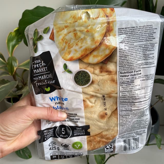The only brand of vegan naan bread I've been able to find. It definitely doesn't disappoint! Stayed soft and fresh right up to the expiry date. Delicious on it's own or dipped in hummus or a similar spread. Try topping it with vegan butter, vegan cheese and garlic powder, then warming it in the oven for an amazing vegan garlic bread! Also available in whole wheat. You can find it at Walmart.