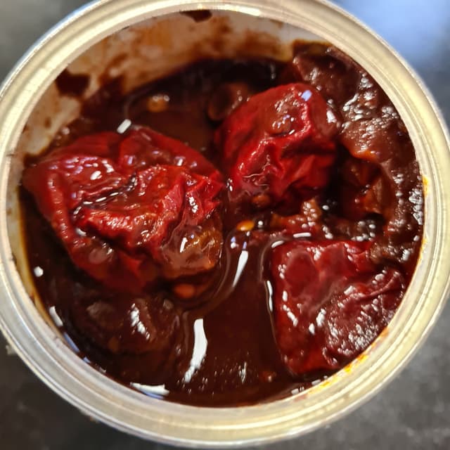 The most amazing smokey chillies, although it says mild on the can it is hectic hot. I used it to make the most amazing Texan BBQ sauce from a recipe from Wicked Kitchen, this sauce was then used to braze my seitan. I think these chillies will make the most amazing curry. https://wickedkitchen.com/the-og-vegan-brisket-texas-bbq-style-seitan/ https://wickedkitchen.com/wicked-bbq-sauce-recipe/