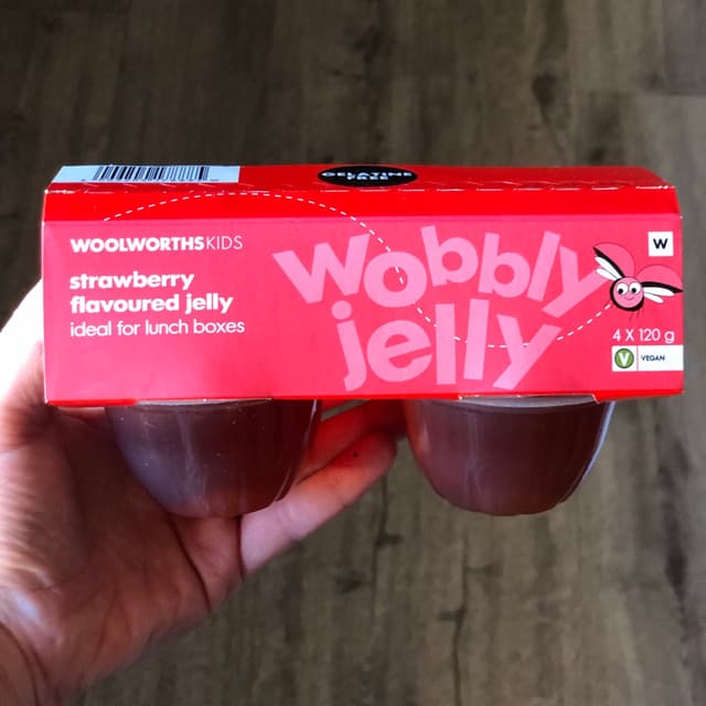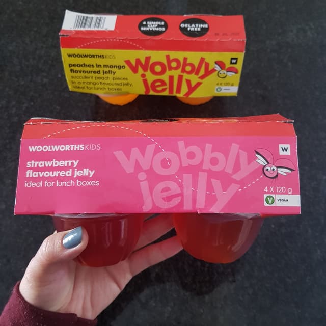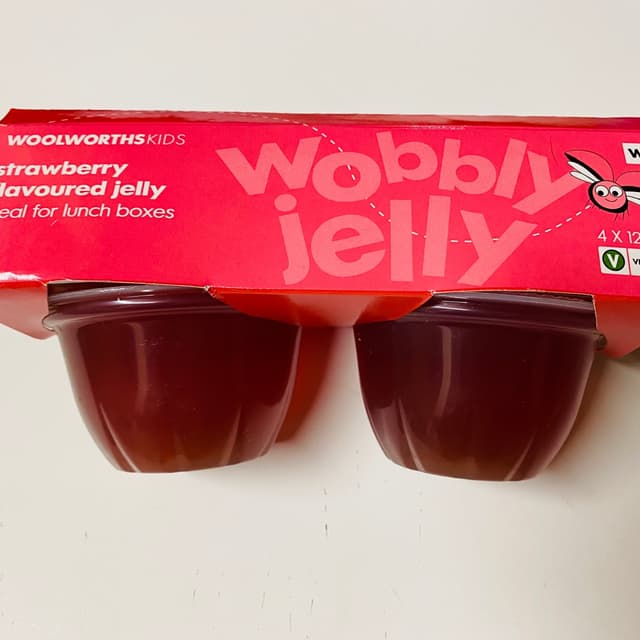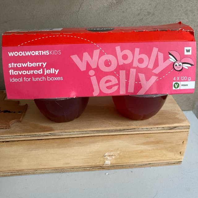 R45 for four little tubs - quite sweet but the strawberry flavour comes through - also not a stiff jelly so definitely wobbly 😁 Not as good as the mango with peach bits but I’ll have again. #veganjelly #strawberry